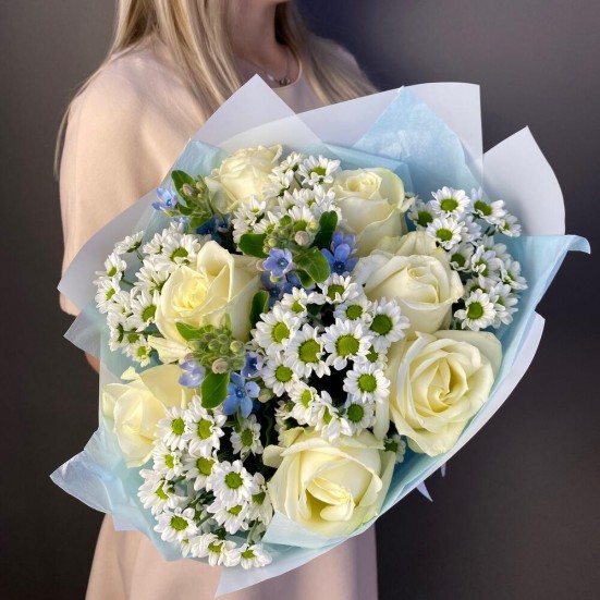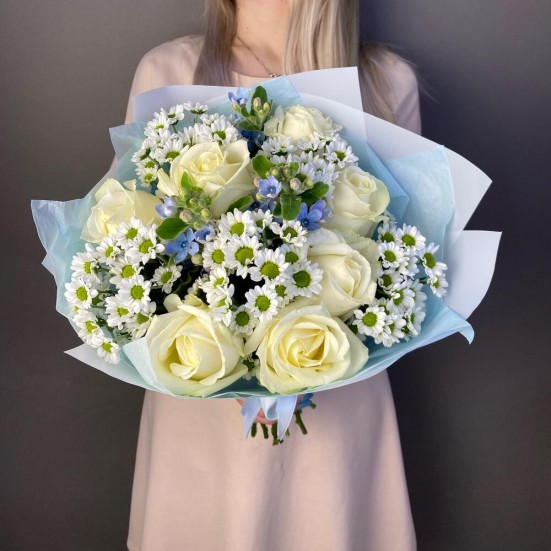 Букет «7 роз и хризантемы»