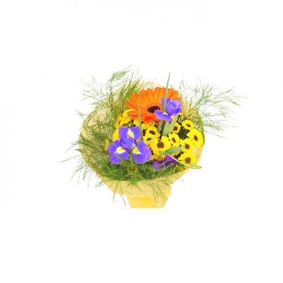 Букет из ирисов и эустомы с герберой
