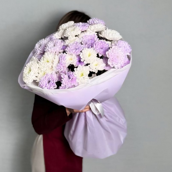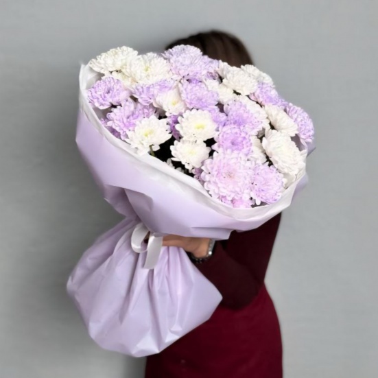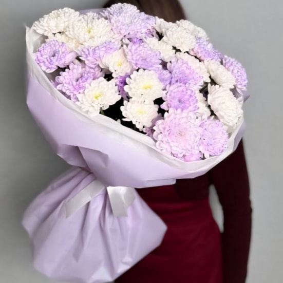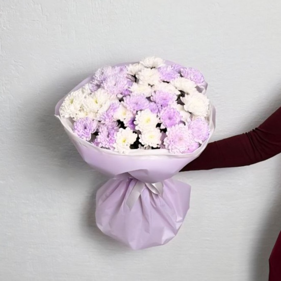 Букет из 9 фиолетовых и белых хризантем в Нальчике